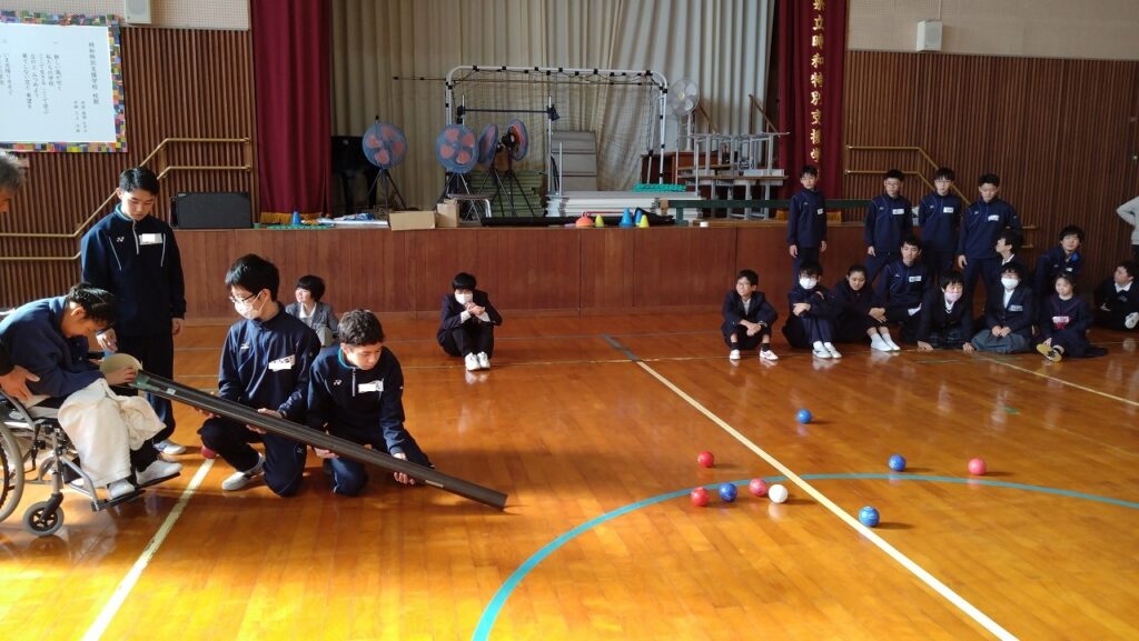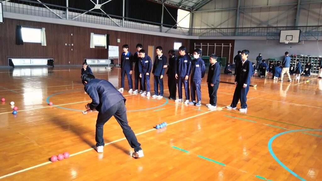 はじめに挨拶とお互いに自己紹介をしました。さすがに緊張している様子がうかがえました。しかし、一緒にダンスを踊ったり、ボッチャをして過ごすうちに気持ちも和らぎ、コミュニケーションを取る場面が増え、楽しい時間を過ごすことができたようです。生徒の振り返りから、「どのような生徒がいるのか不安だった」「うまくコミュケーションが取れるか不安だった」などの不安な気持ちから「楽しかった」「話ができてよかった」「もっとコミュニケーションを取ればよかった」という気持ちへの変化が見て取れました。2回目の交流は3月に行います。次の交流は本校の生徒たちが考えた内容の活動を行います。次回の交流が楽しみです。