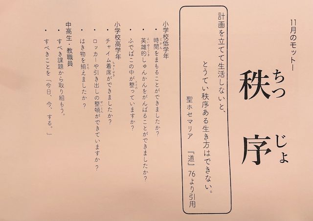 11月のモットー「秩序」