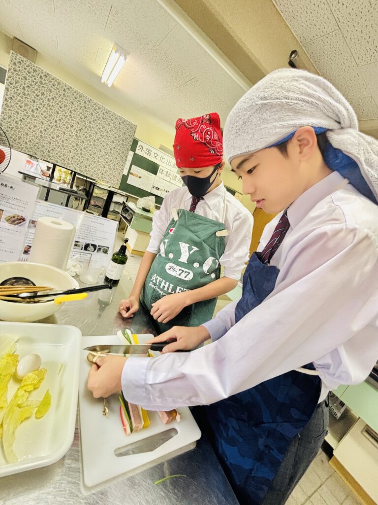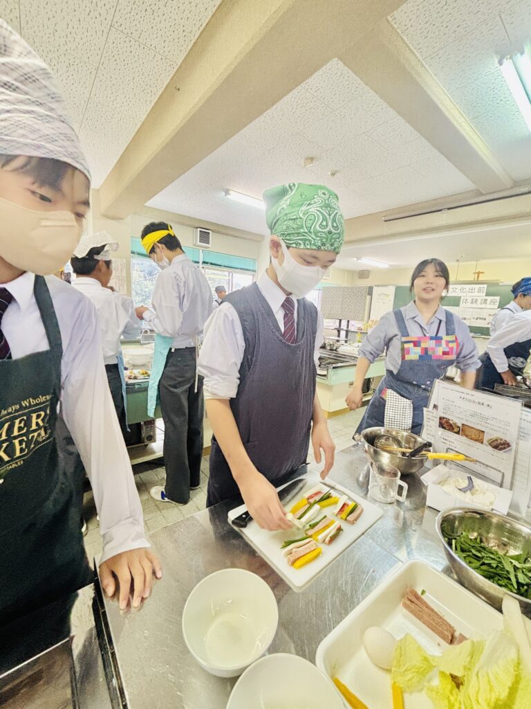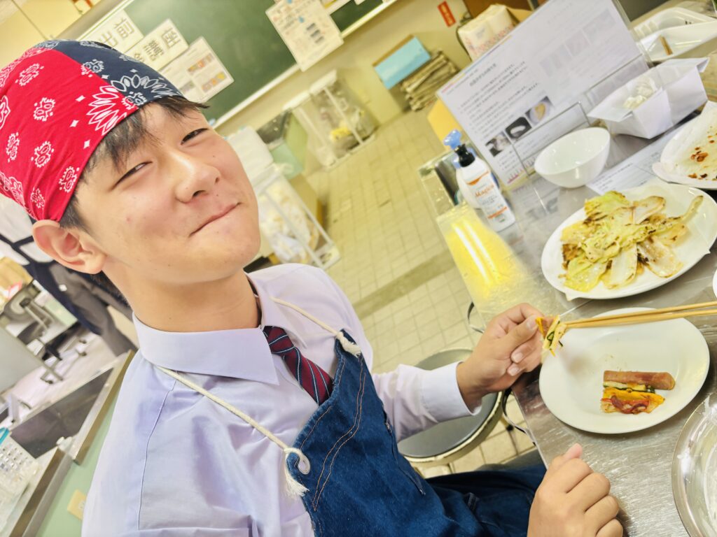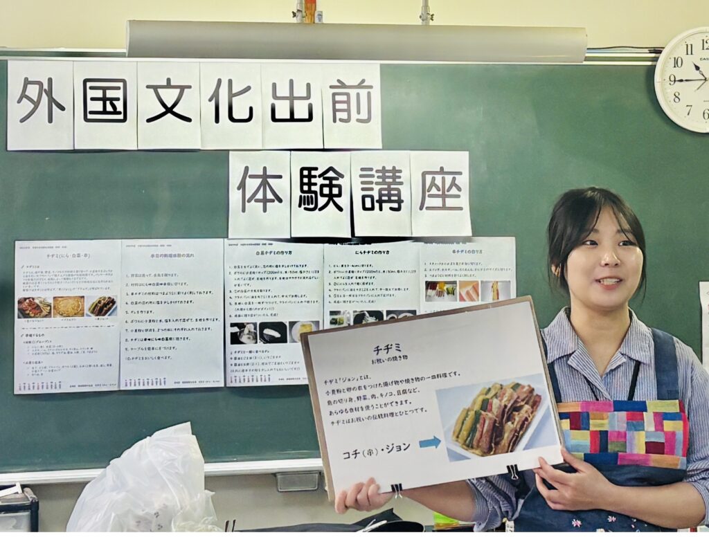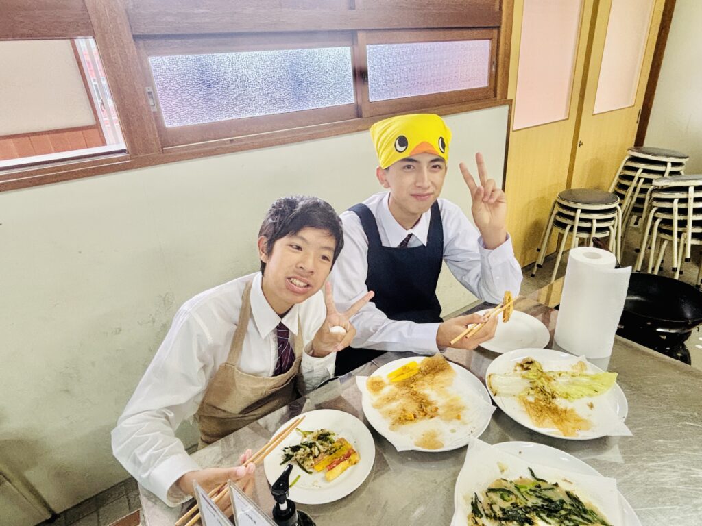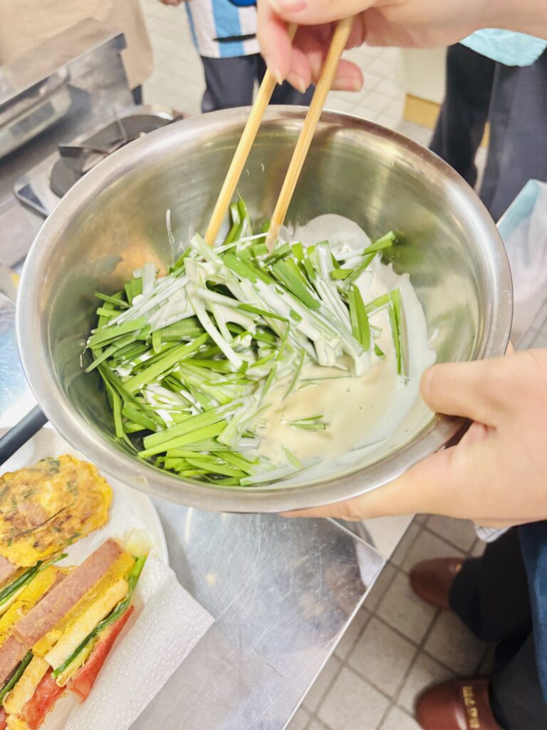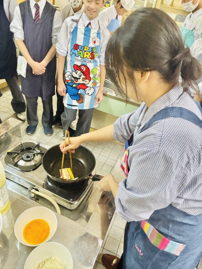 「白菜チヂミ」や「串チヂミ」は初めて知る生徒も多く、「こんなチヂミがあるんだ!」と驚きながら、楽しく調理していました。
