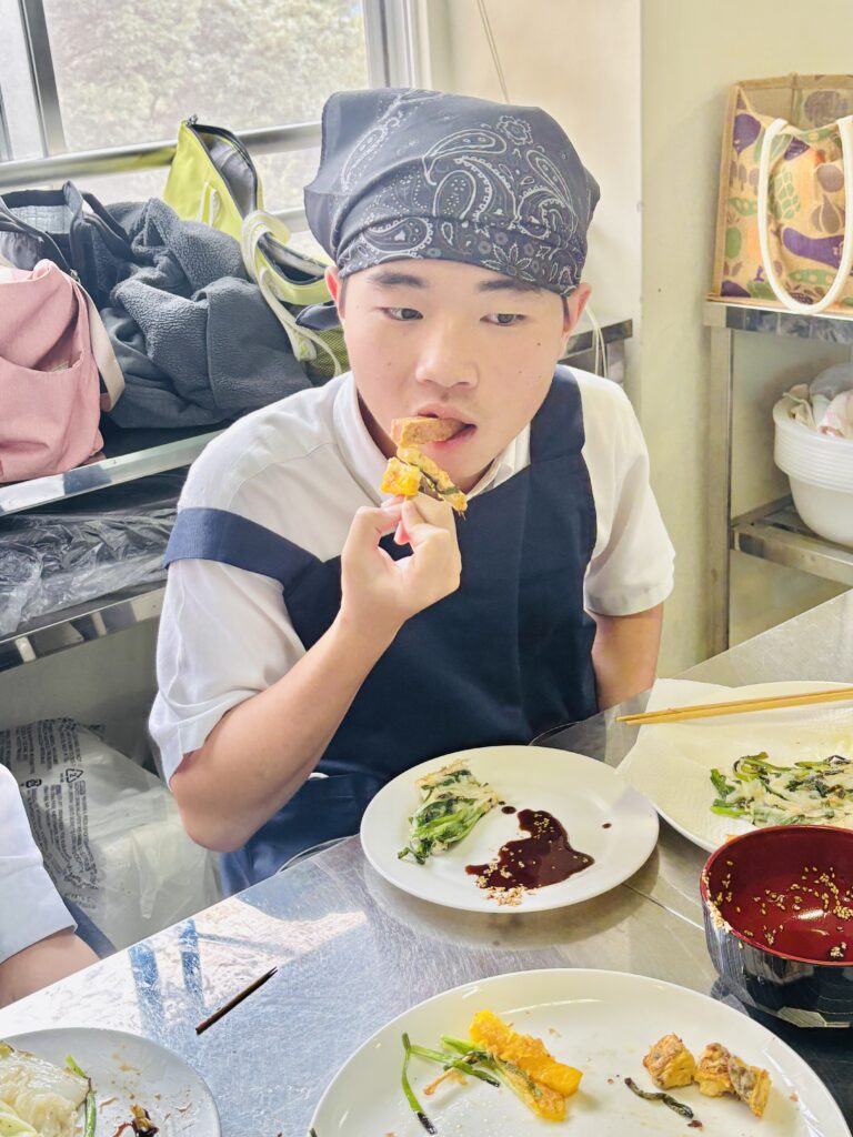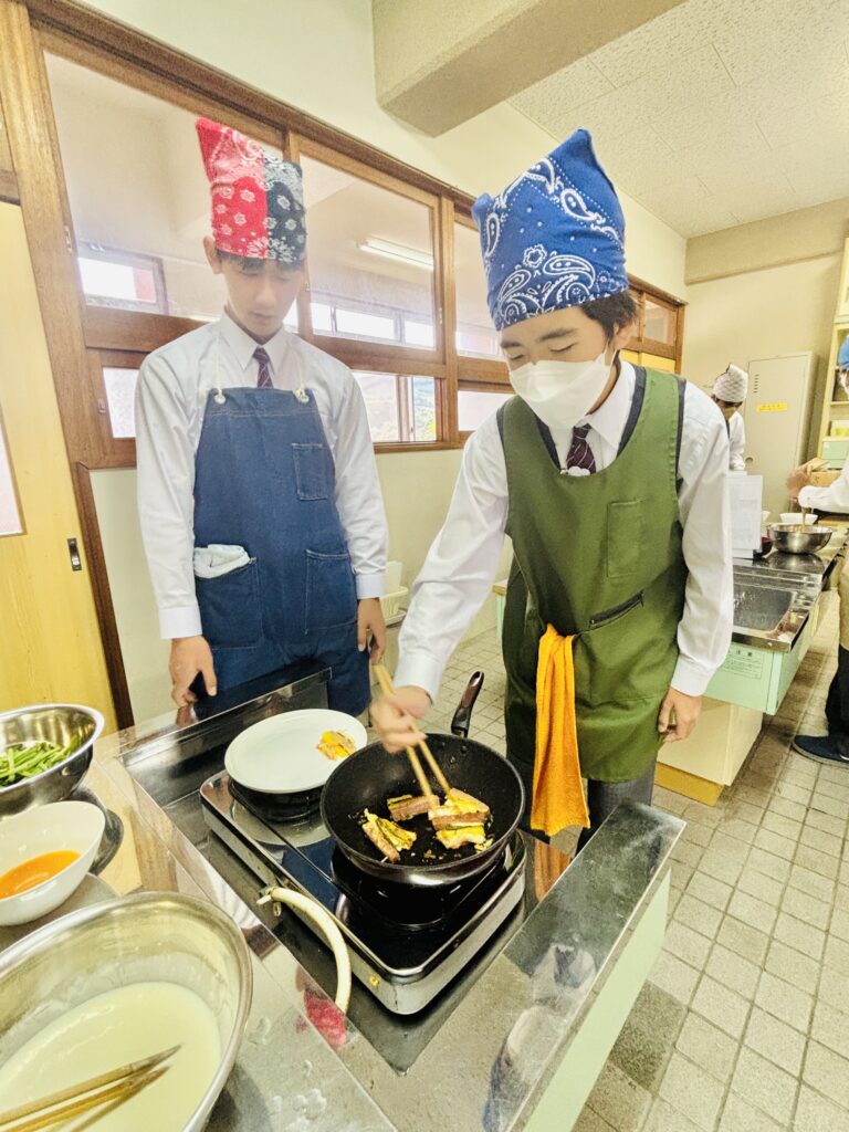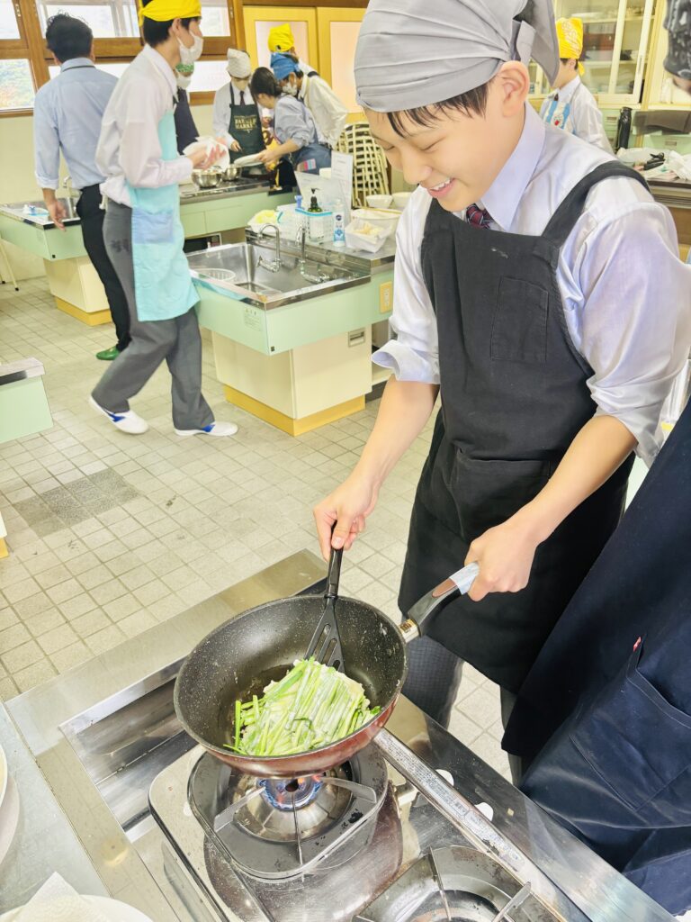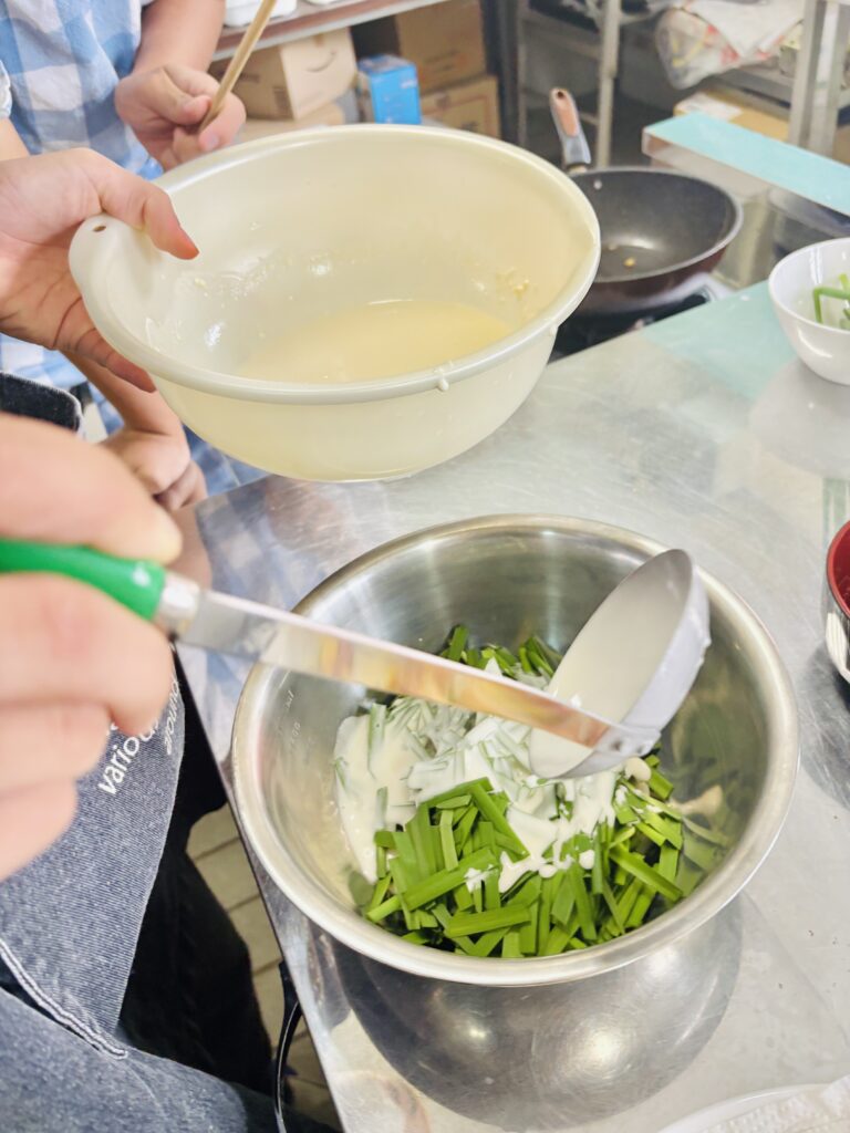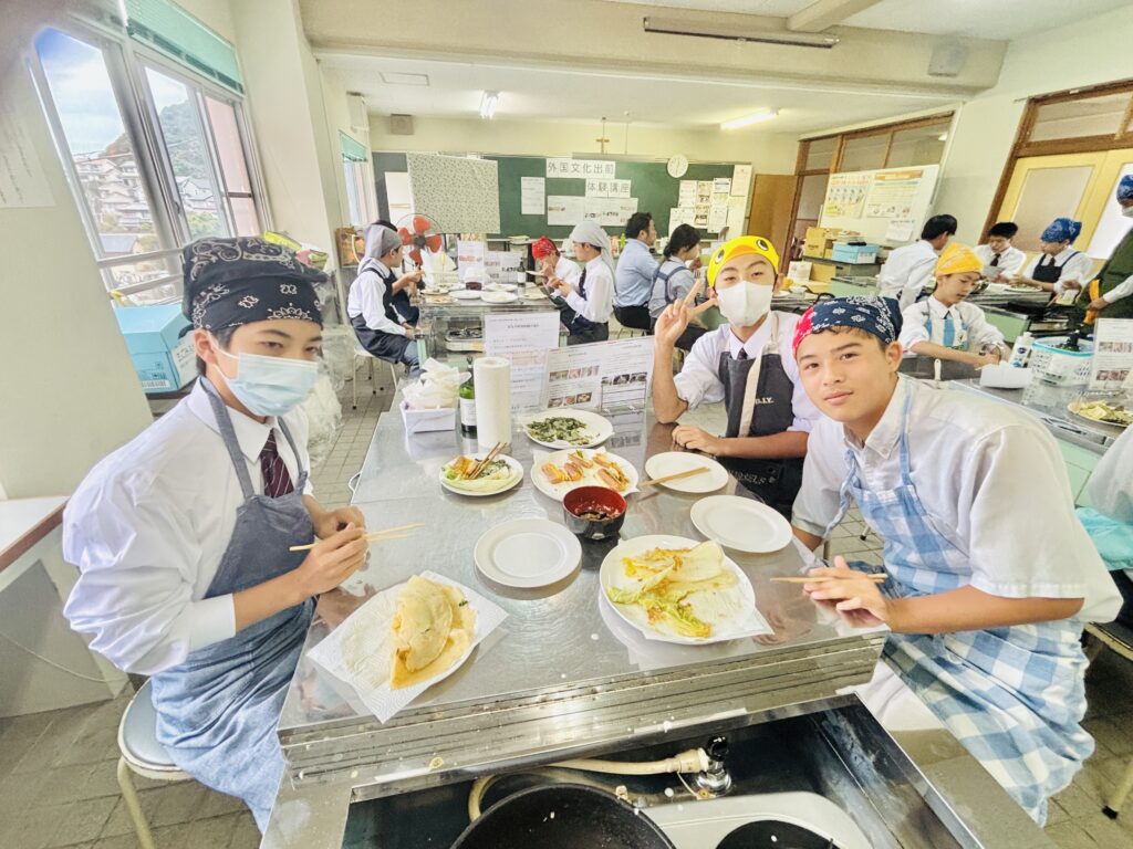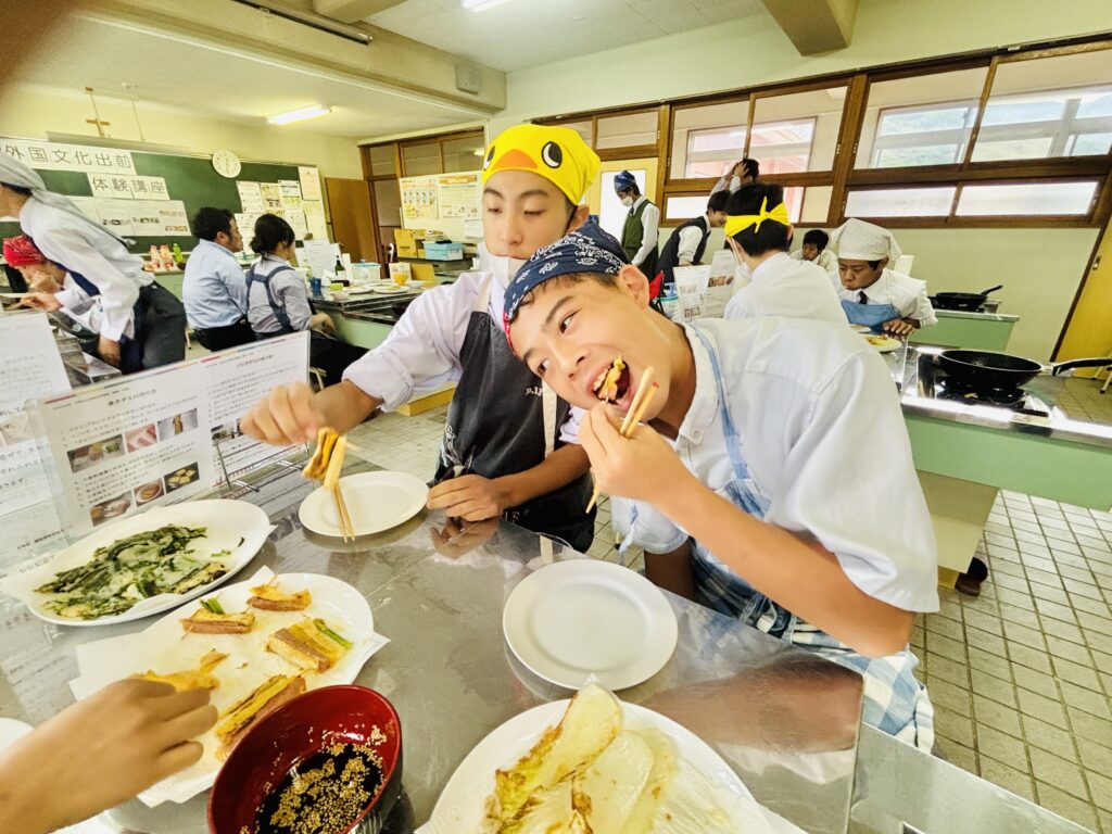 「白菜チヂミ」や「串チヂミ」は初めて知る生徒も多く、「こんなチヂミがあるんだ!」と驚きながら、楽しく調理していました。