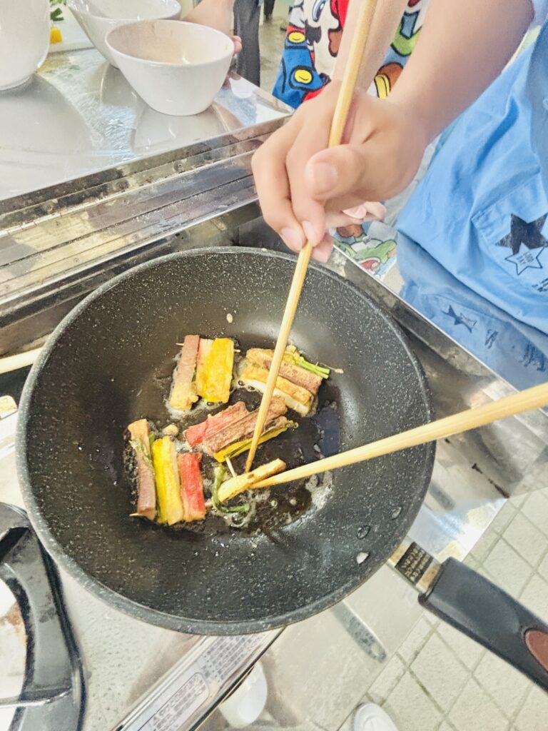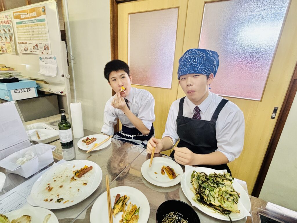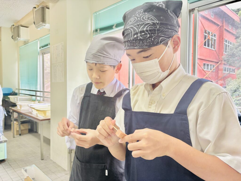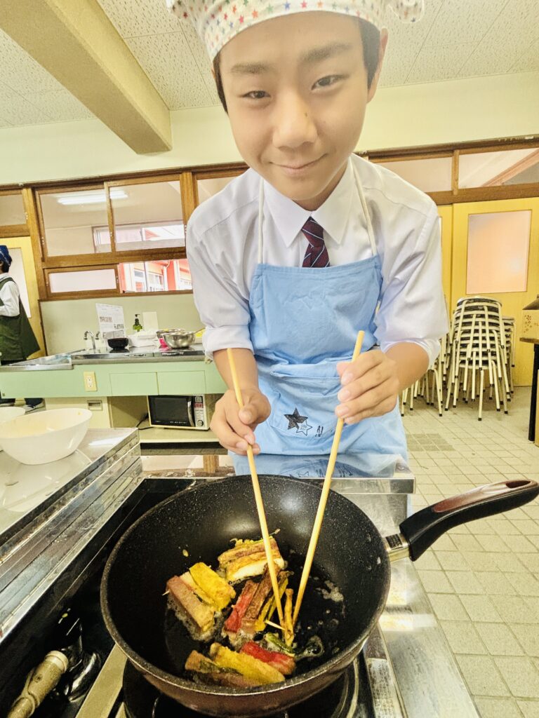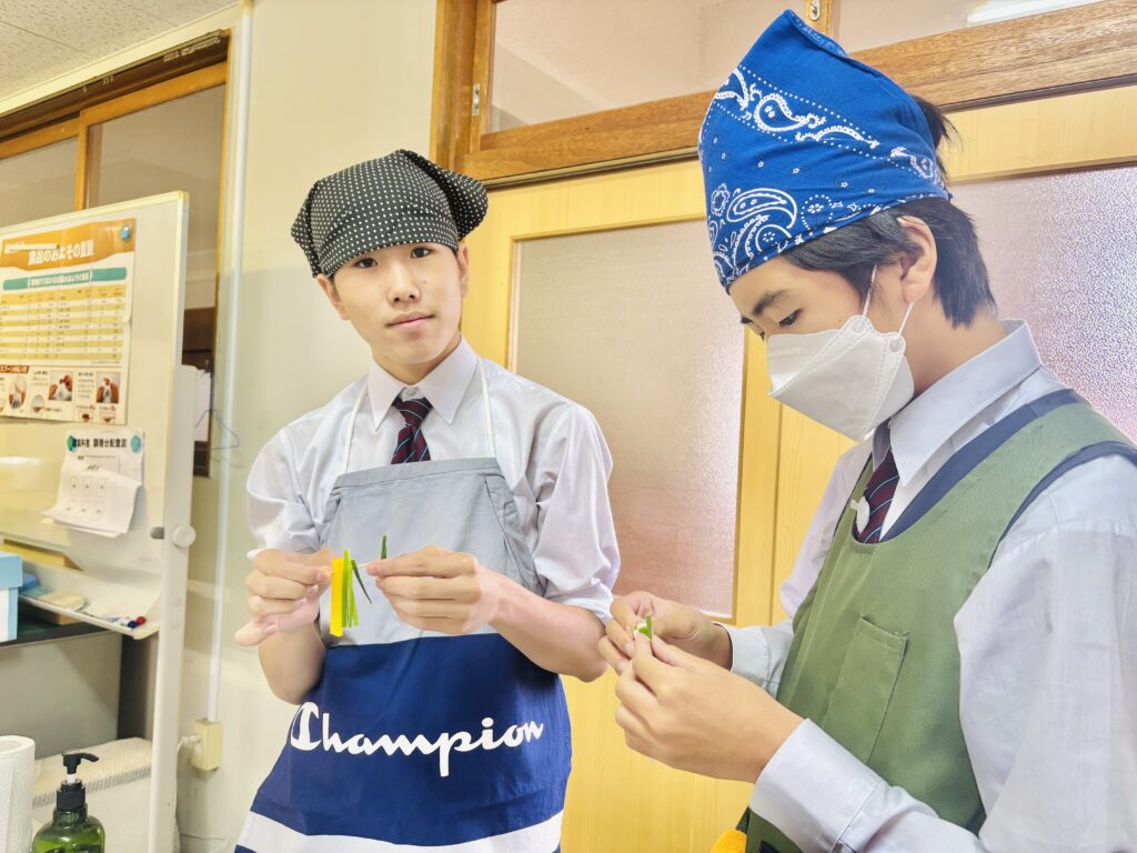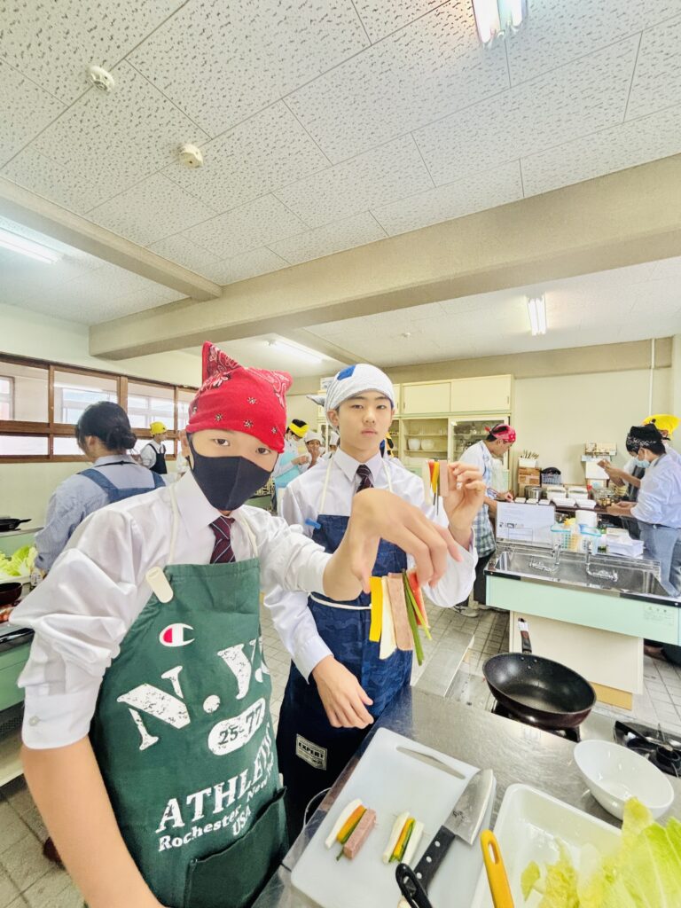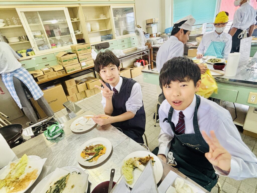 「白菜チヂミ」や「串チヂミ」は初めて知る生徒も多く、「こんなチヂミがあるんだ!」と驚きながら、楽しく調理していました。
