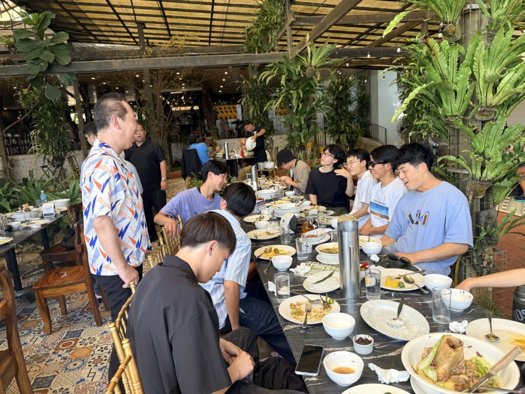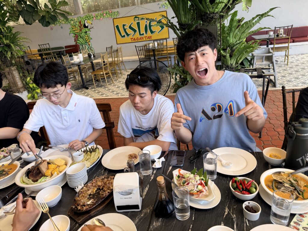→タール火山の絶景を背に、涼しい風を感じながらの食事は格別でした。湖に浮かぶ火山の雄大さと、穏やかな空気感。都会の喧騒とは対照的な、フィリピンの豊かな自然の力強さを五感で堪能した、贅沢で貴重なひと時です。