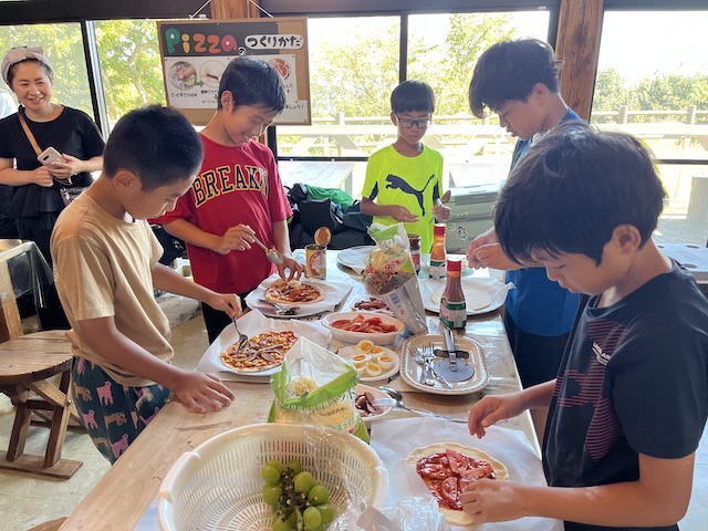 自分で作った焼きたてのピザの味は格別だったようで、ある子は「ピザ作りが一番楽しかった です!」というほどでした。