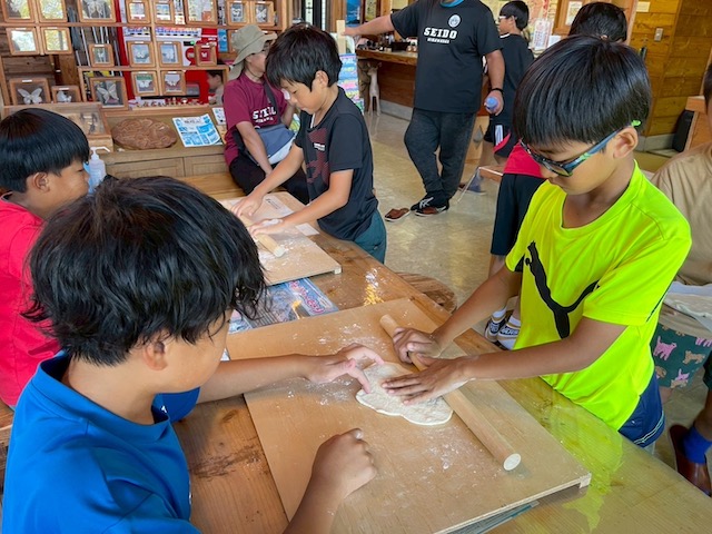練習後は、森林体験館に行きみんなでピザ作りを体験させてもらいました。