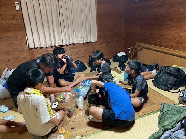 みんなで花火をしたり、お菓子を食べたり、みんなで談笑したりして 1日目を終えました。